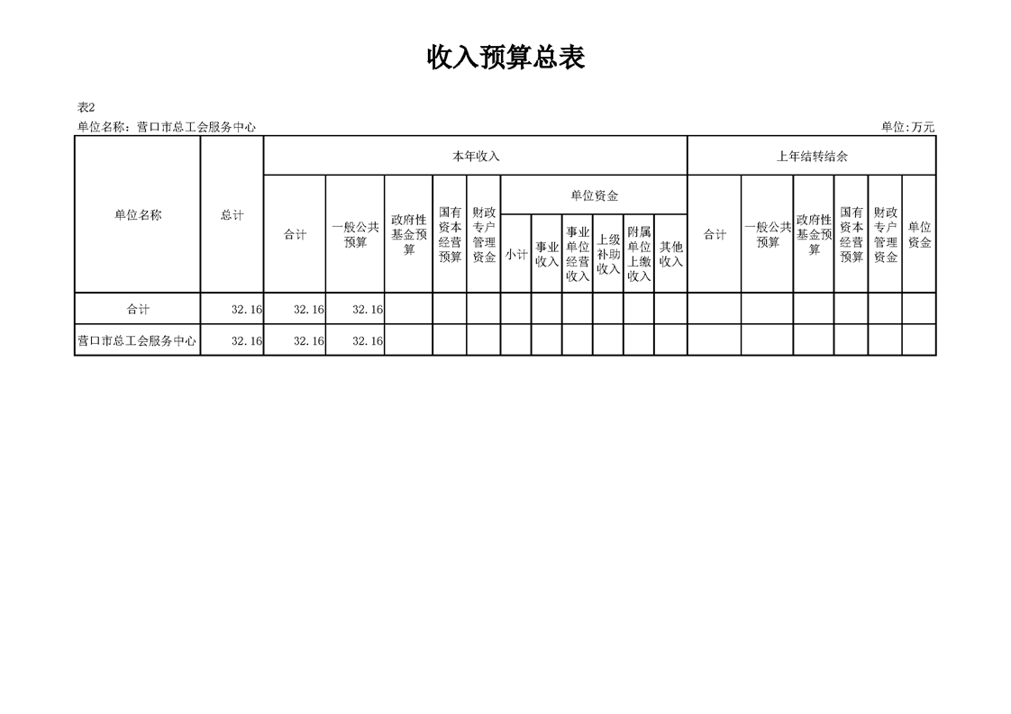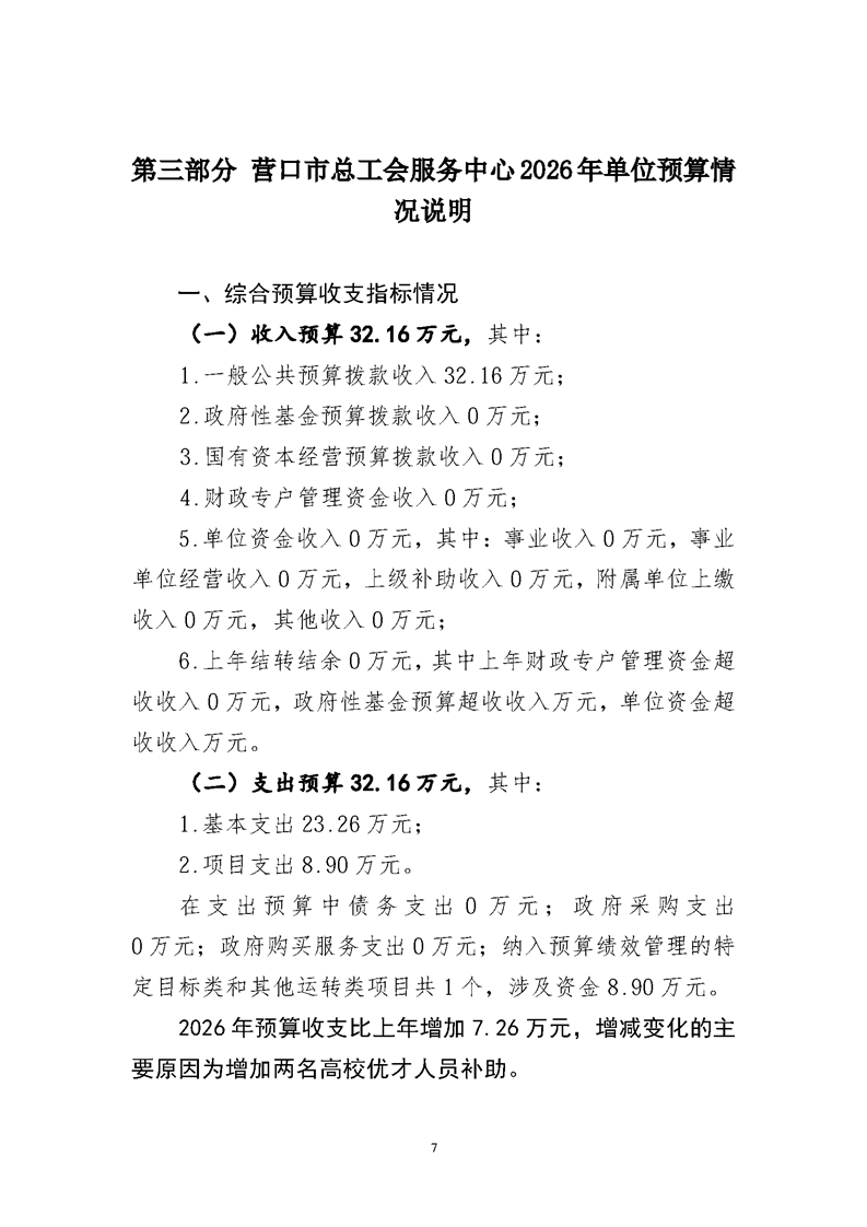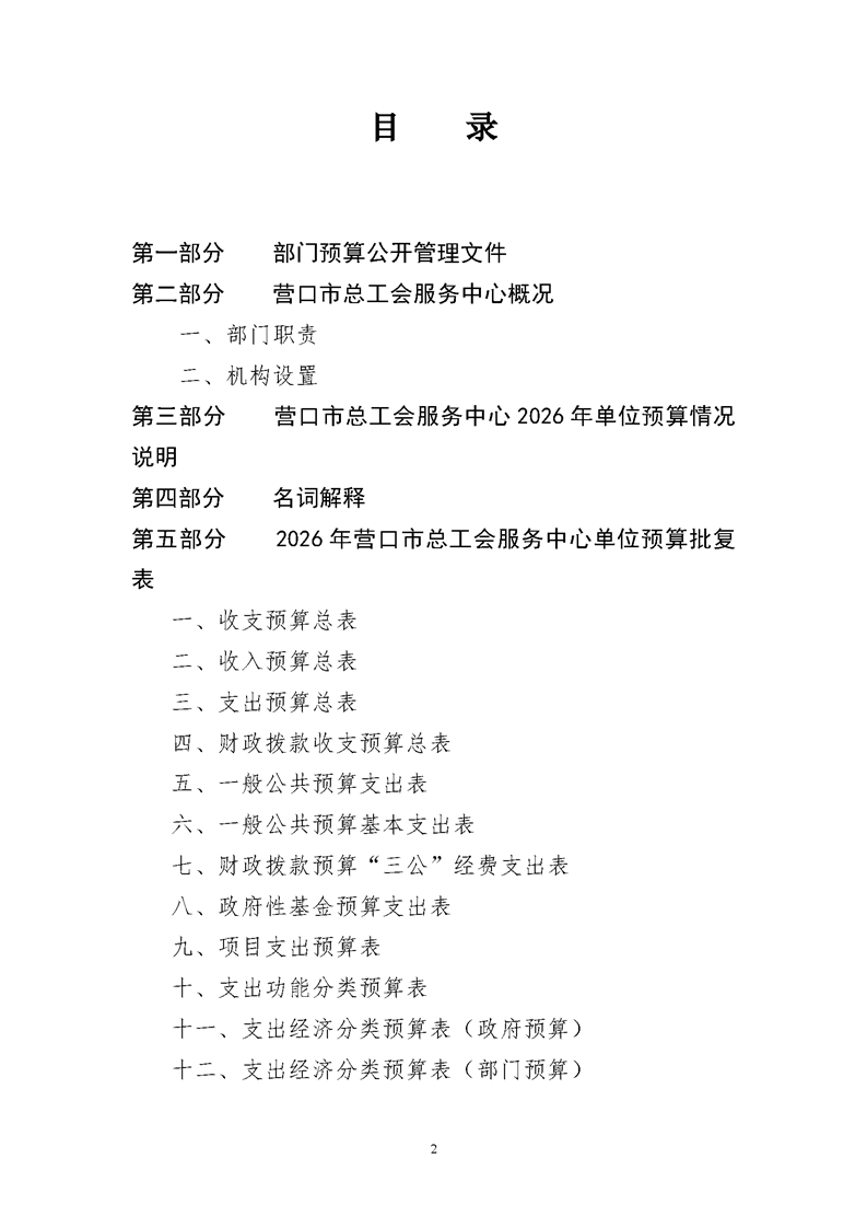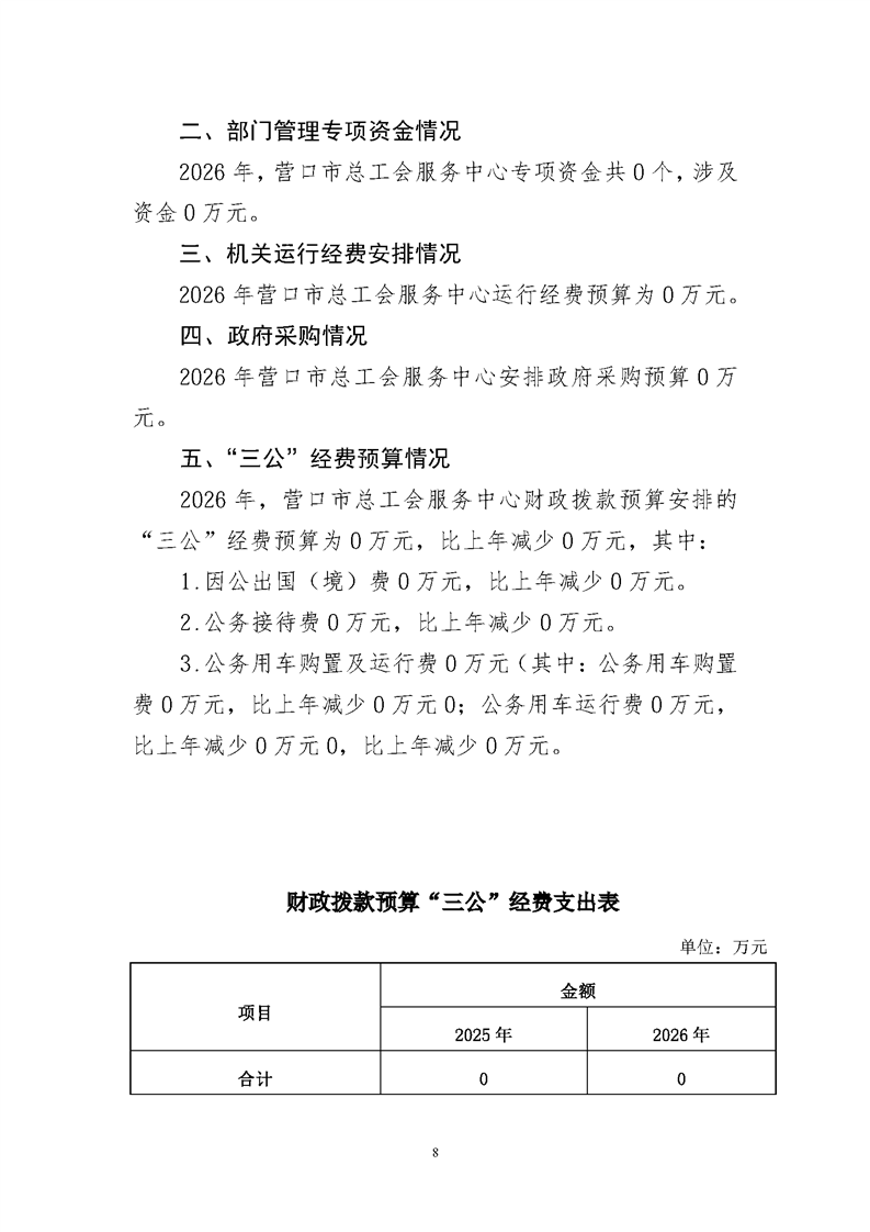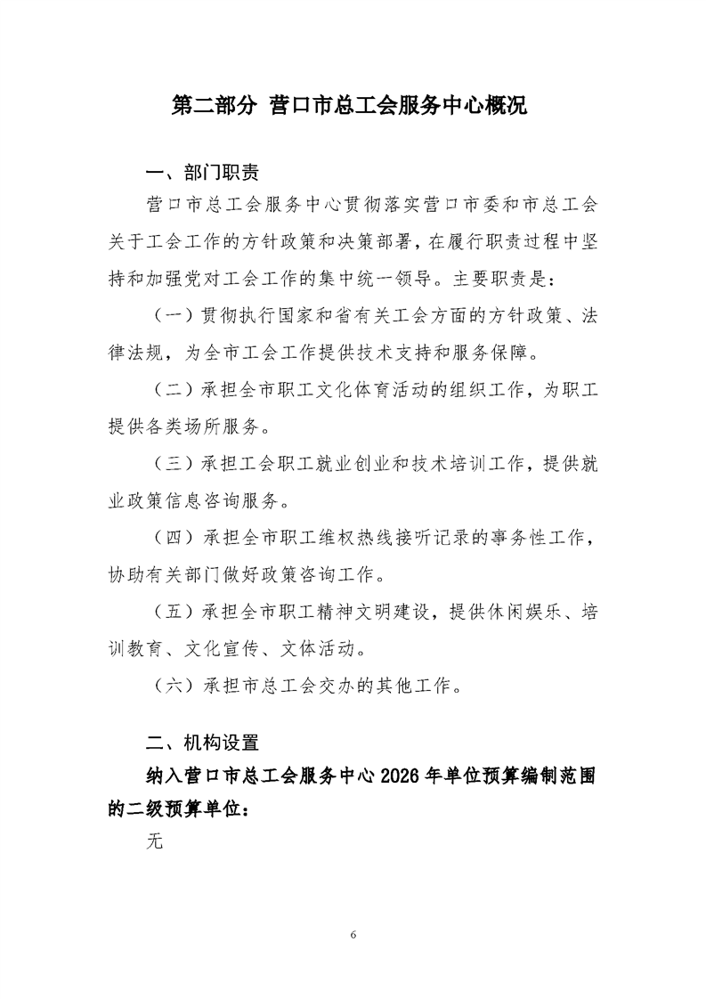 营口市总工会服务中心2026年度单位预算
