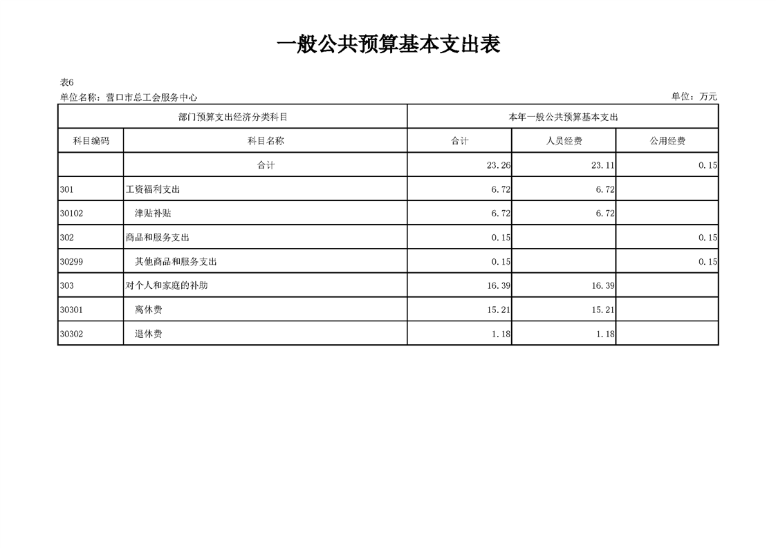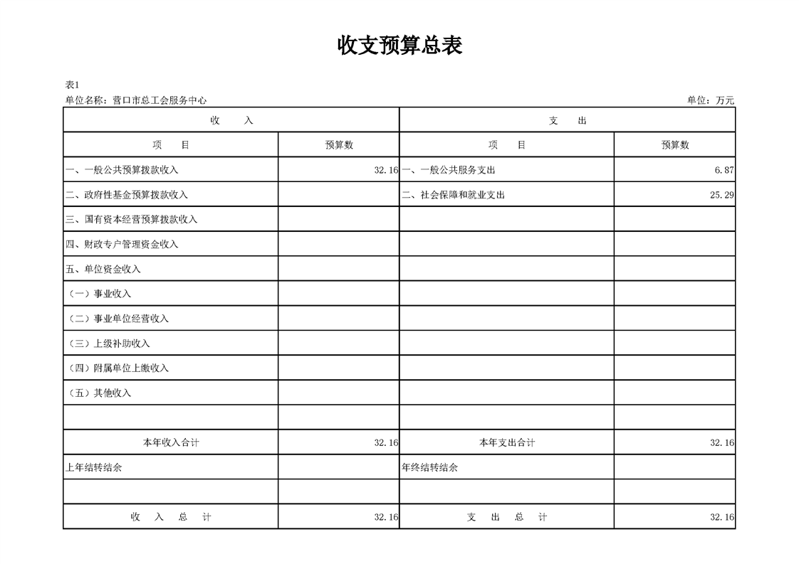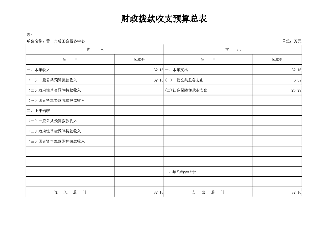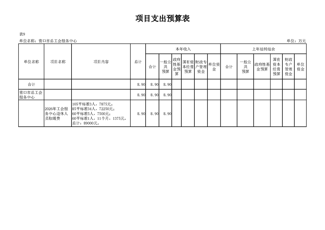营口市总工会服务中心2026年度单位预算