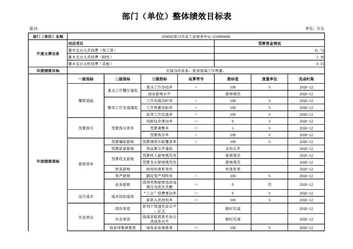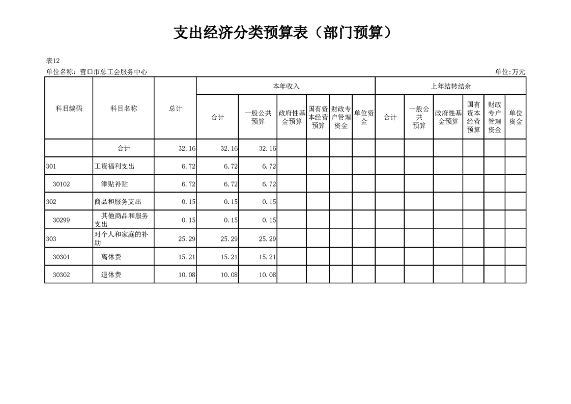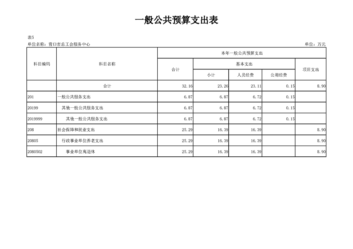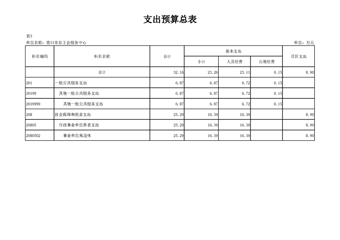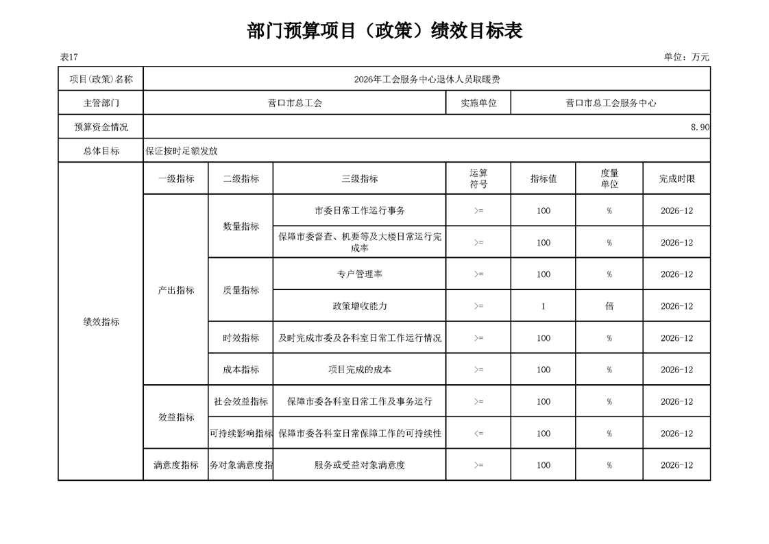 营口市总工会服务中心2026年度单位预算